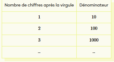 Tu peux transformer la partie décimale d'un nombre en fraction en plaçant au numérateur cette partie décimale, et au dénominateur une puissance de 10.