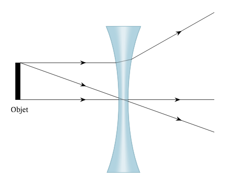 Le rayon passant par le centre de la lentille n'est pas dévié grâce à la forme de cette lentille. Voici un exemple.