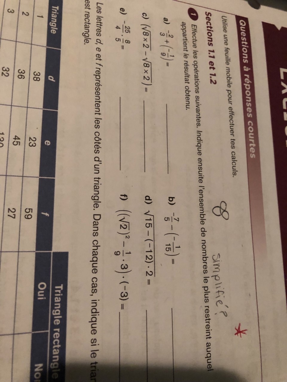 Dans ce numéro, la première étape est de faire les opérations qui te sont données. Une fois que tu as la réponse d'une opération, tu dois la classer dans le plus petit ensemble de nombres possibles. Si tu ne te souviens plus de ces ensembles, voici un petit tableau récapitulatif: