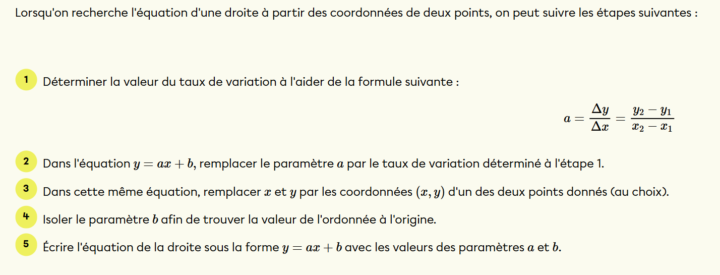 Consulte ceci au besoin : Trouver la règle d'une fonction affine | Secondaire | Alloprof