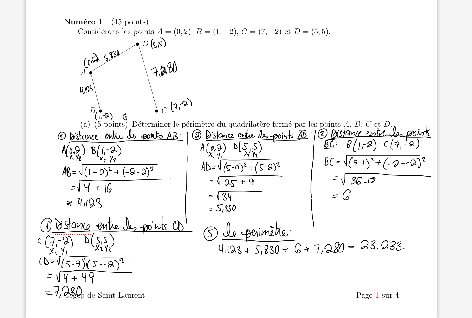 Pour déterminer si les droites AC et BD sont perpendiculaires, tu dois vérifier si la pente de la droite AC et celle de la droite BD sont opposées et inverses.