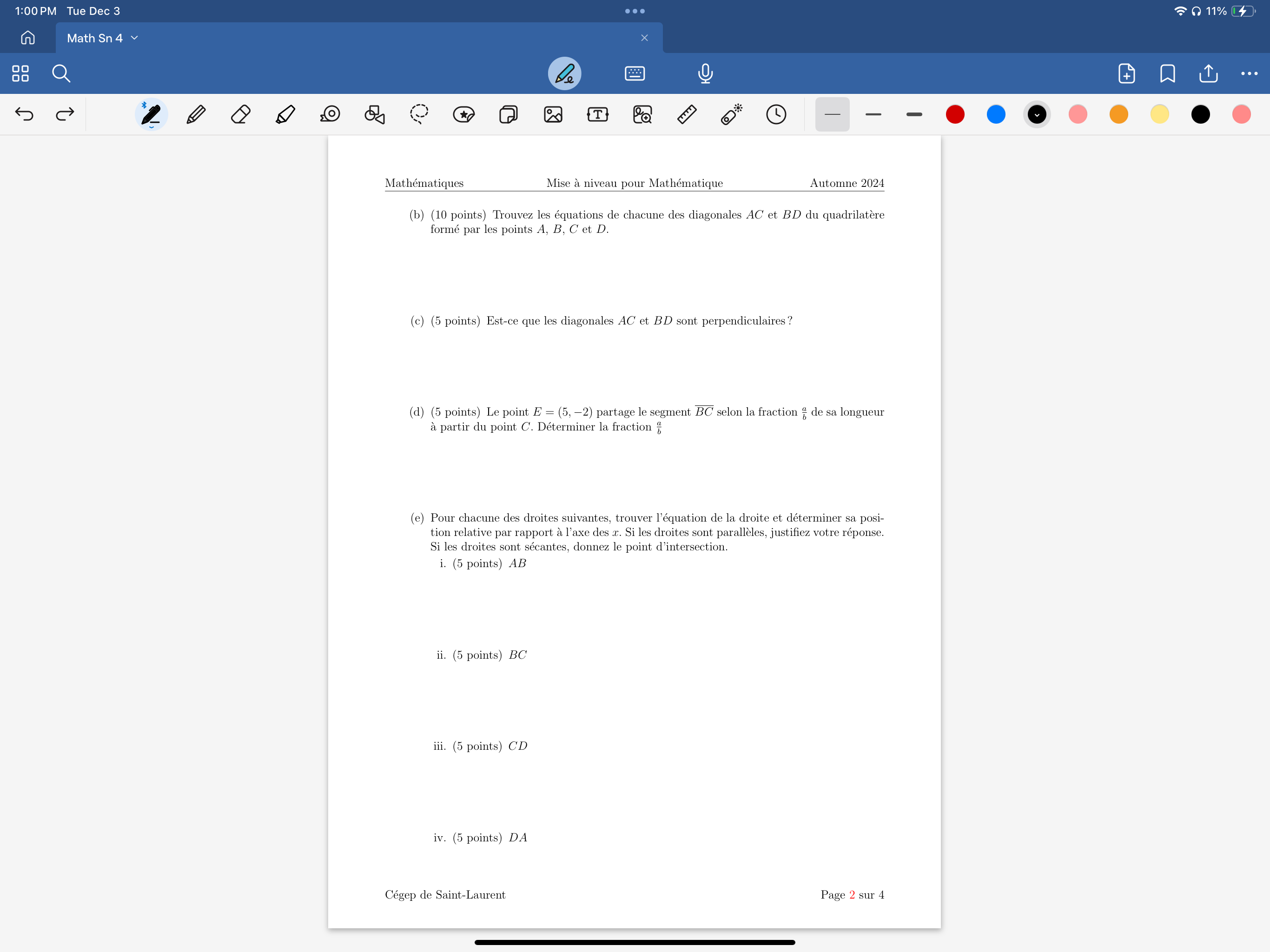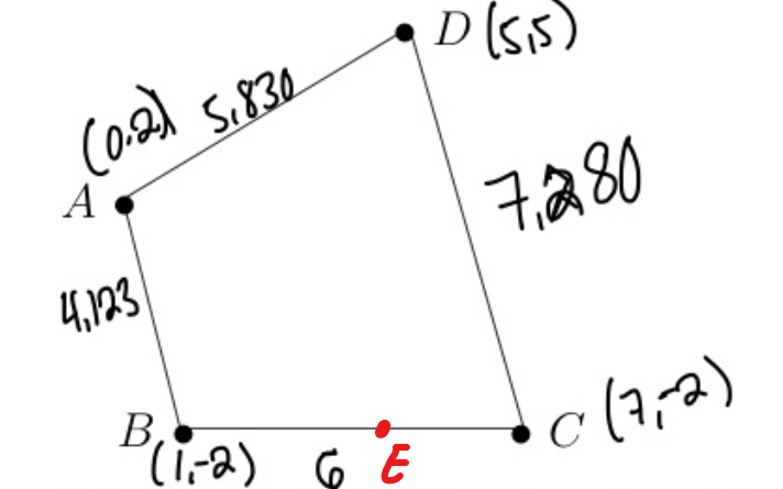 Ensuite, pour le numéro d), on te dit que le point E est sur le segment BC.