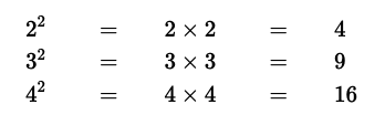 où n peut être n'importe quel nombre. L'exposant, le petit deux dans ce cas, indique le nombre de fois que la base, n, est multipliée par elle-même.