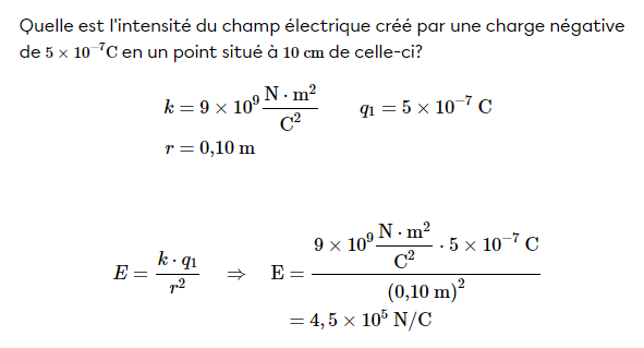 La fiche que je t'ai envoyée comprend aussi un exemple. Dans cet exemple, il est question de calculer l'influence d'un électron à un point se trouvant à une distance de 10 cm :