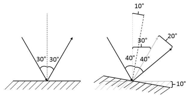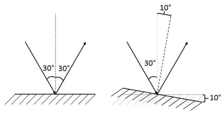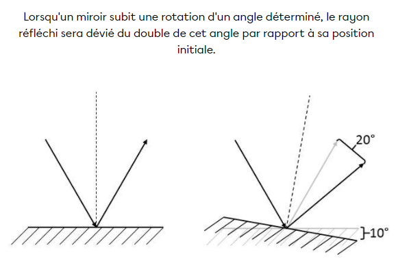 Comme tu peux le voir, une rotation d'un certain nombre de degrés implique le changement du double de degrés dans l'angle d'incidence du rayon. Tu peux essayer de compléter ton exercice avec ces informations et si tu as d'autres questions, n'hésite pas !