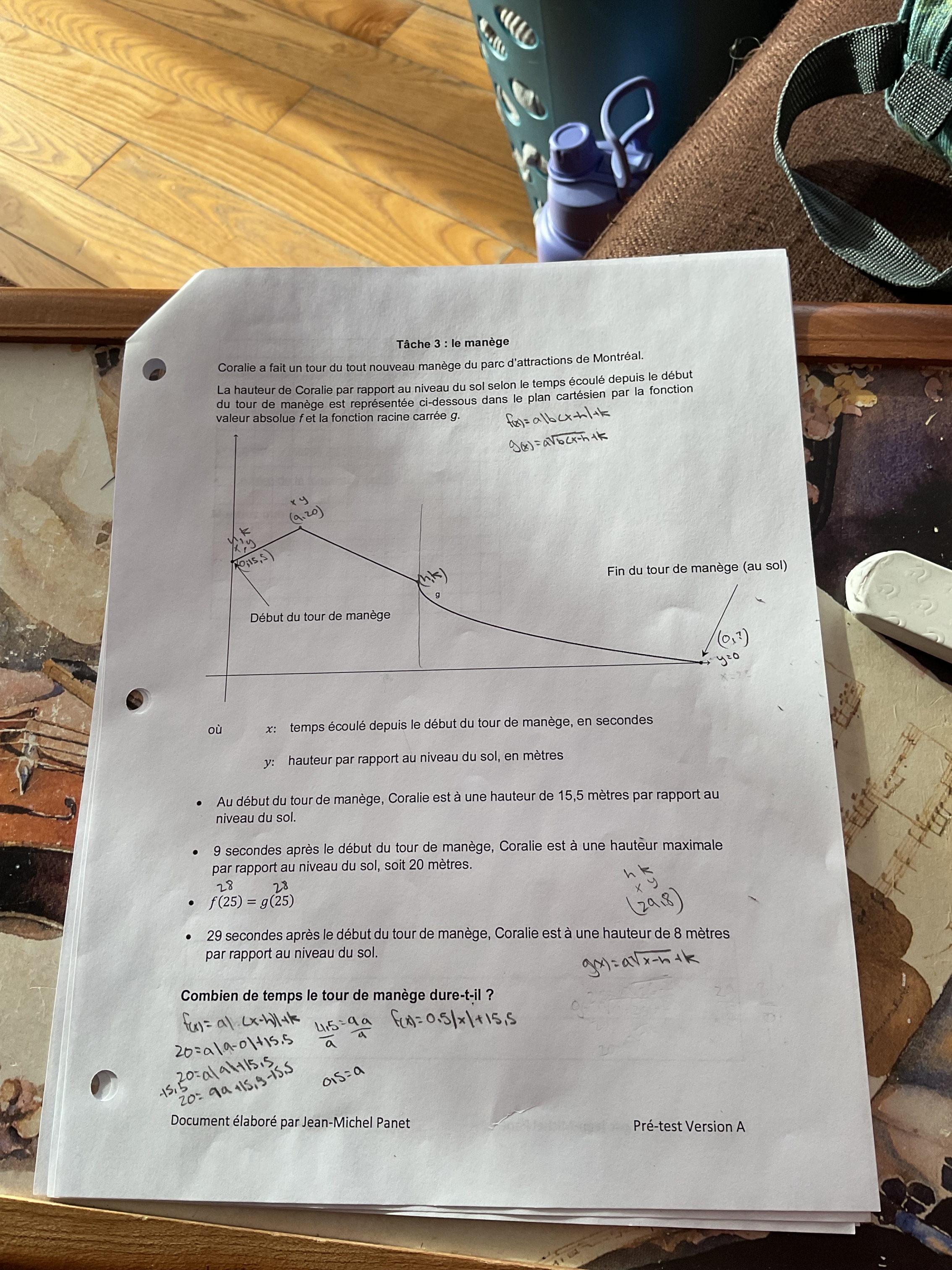 Tu sais que le point de rencontre des deux droites est (25,28) et que c'est également le (h,k) de la fonction racine carré. Tu peux utiliser le point ( 29,8) pour trouver le a de ta fonction racine carré.