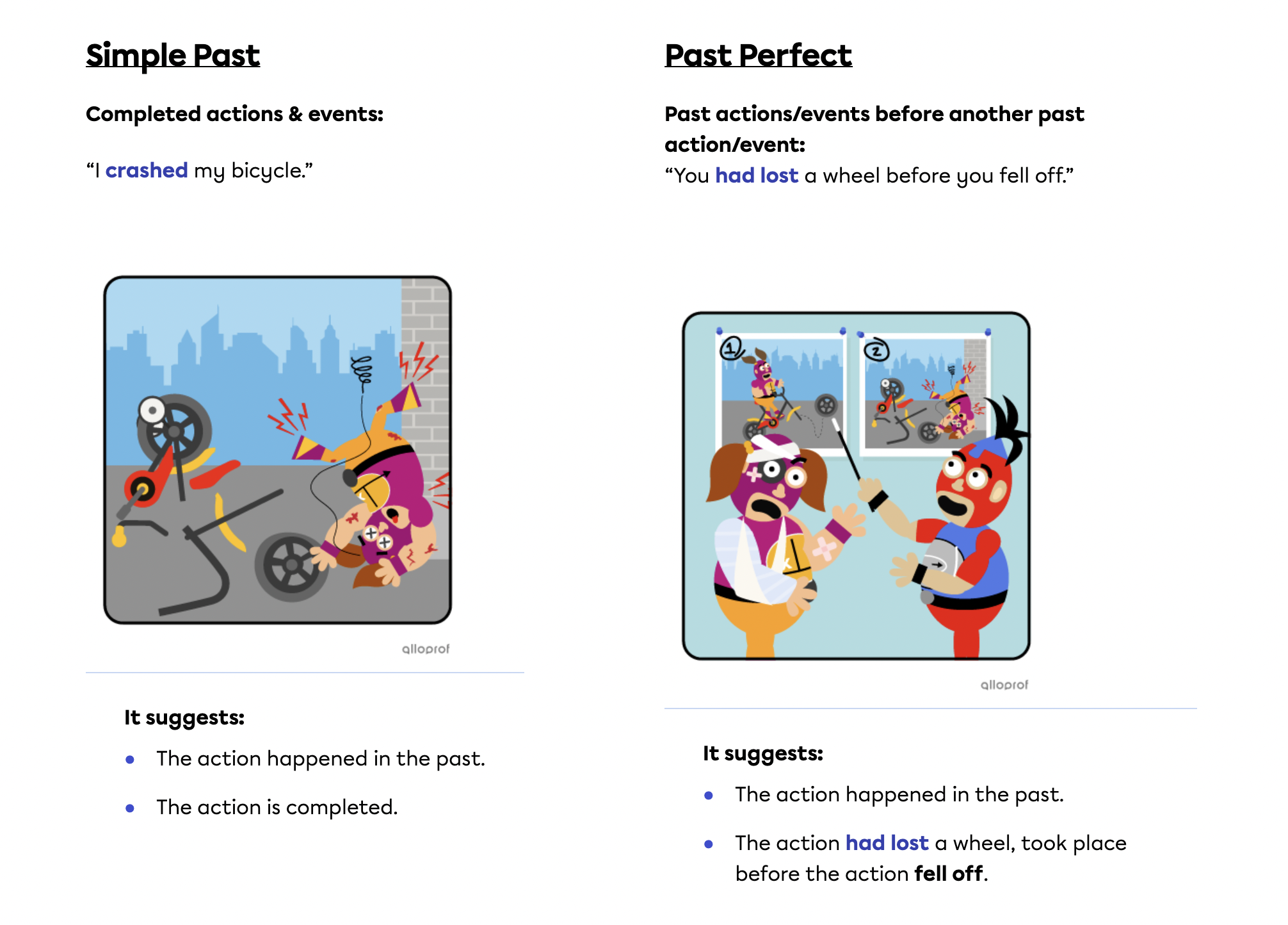 (Le passé parfait indique une action ou un événement qui a prit place avant une autre action ou un autre moment spécifique. Il réfère à un moment du passé, avant un autre moment du passé. Il est souvent utilisé avec le passé simple. [Traduction libre].