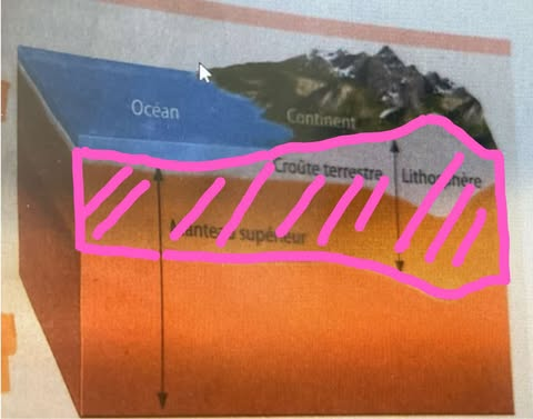Bonjour pour la lithosphère c'est pas clair mais pouvez-vous s'il vous plaît écrire sur l'image dans votre explication comme ça va être plus clair tout comme vos anciens collègues ont déjà fait? 😉 Où se trouve la coûte terrestre c'est coller avec la lithosphère et c'est pas clair?