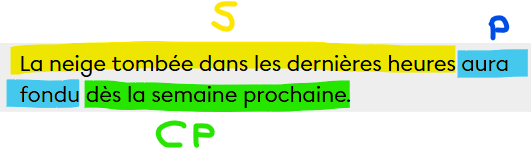 Dans la phrase: La neige tombee dans les dernieres heures aura fondu des la semaine prochaine. Ou est le complement direct.