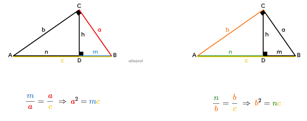 Je t'invite aussi à consulter la page suivante pour trouver des exemples de calculs qui pourraient t'aider à comprendre: https://www.alloprof.qc.ca/fr/eleves/bv/mathematiques/les-relations-metriques-dans-le-triangle-rectangl-m1286