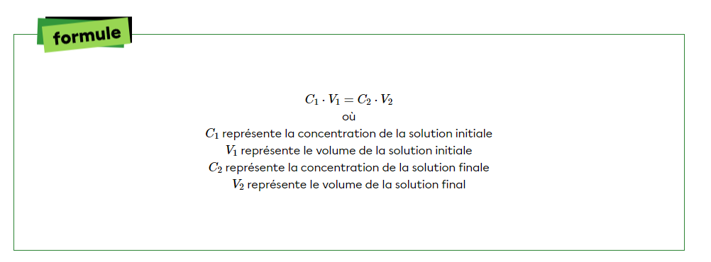 Pour résoudre ce problème de dilution, tu dois utiliser la formule suivante: