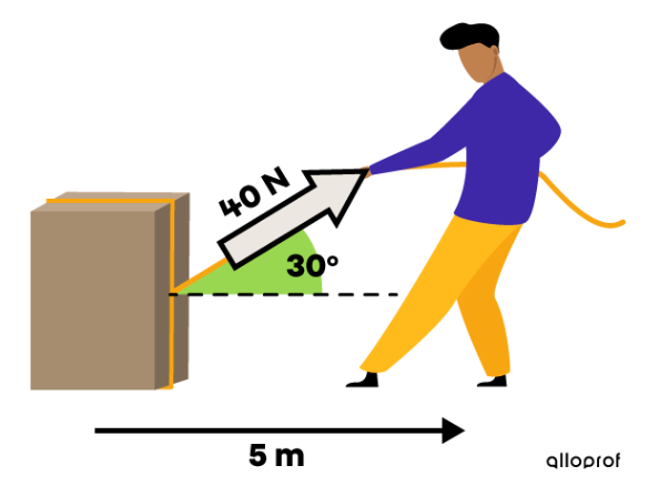 Tu as raison, dans une situation où le référentiel comprend l'axe des x horizontal et l'axe des y vertical, il est possible de calculer la plupart des composantes en x des forces avec cos et des composantes en y des forces avec sin. Voici un exemple qui s'inscrit dans cette situation: