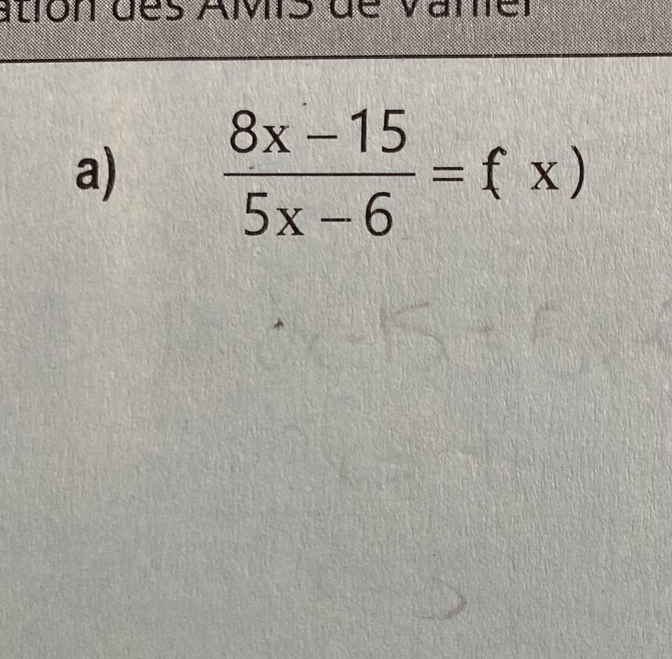 Donc, quelle est la question de cet exercice? Cherches-tu les zéros de cette fonction? Les asymptotes? Faut-il tracer le graphique représenté par cette fonction?