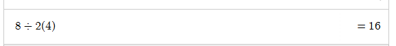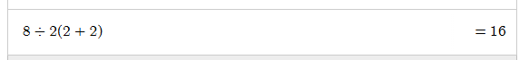 que quelqu'un m'aide! quel est la réponse a l'opération 8÷2(2+2)? ma calculatrice me donne un, mais selon la priorité. des opérations la réponses est 16?!