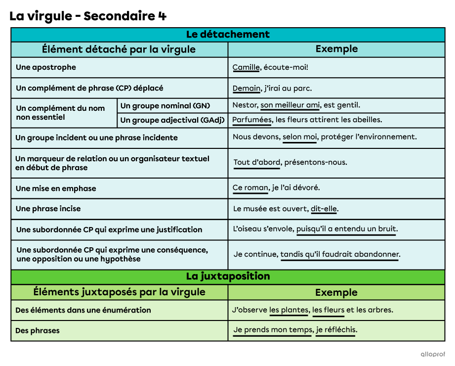 La virgule sert principalement à détacher, à juxtaposer, à coordonner ou à effacer des éléments dans une phrase.