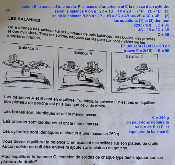 je comprend pas cette question la reponse est 4boule,0prisme,0cylindre pour la balance c m#