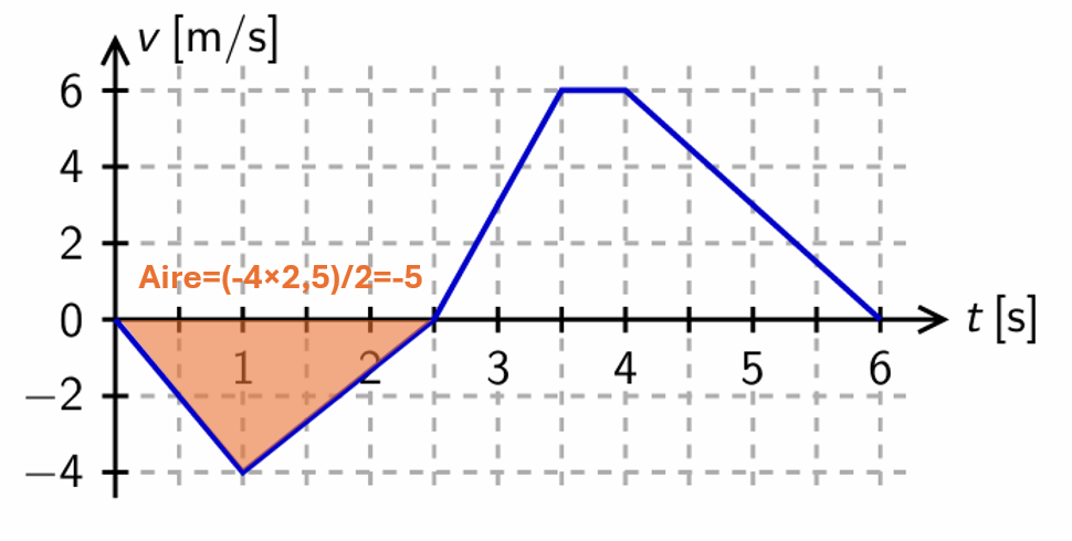 En se fiant à la définition de la vitesse, qui est la distance en fonction du temps, on peut se dire que l'aire sous la courbe représente la distance. On a que :