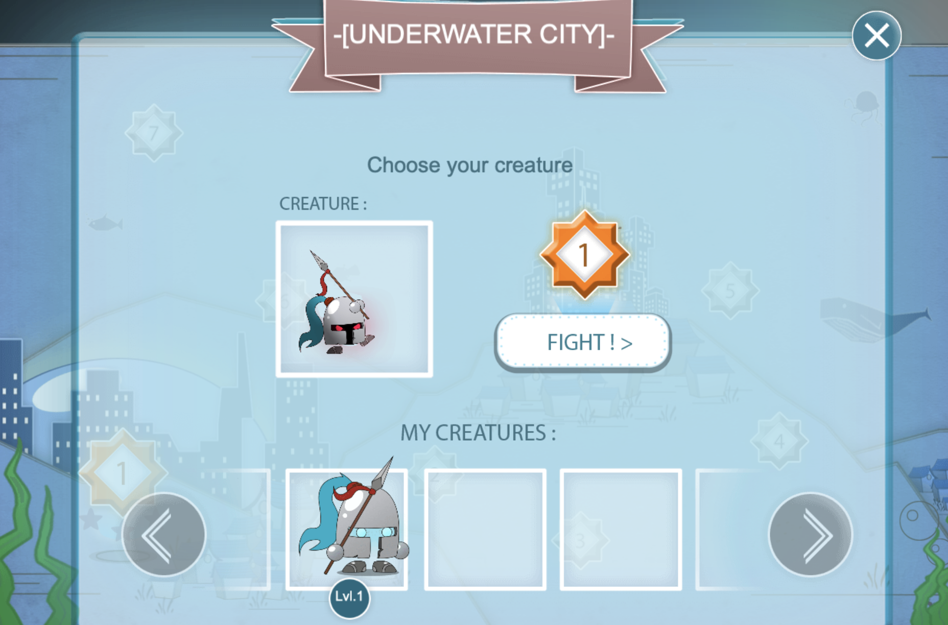 Tu vas pouvoir sélectionner une nouvelle créature de combat en sélectionnant un niveau.