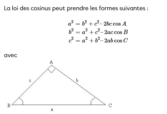 Ainsi, dis-toi que les deux lois permettent de trouver des informations manquantes sur un triangle quelconque dépendamment des infos que tu as déjà 🙂