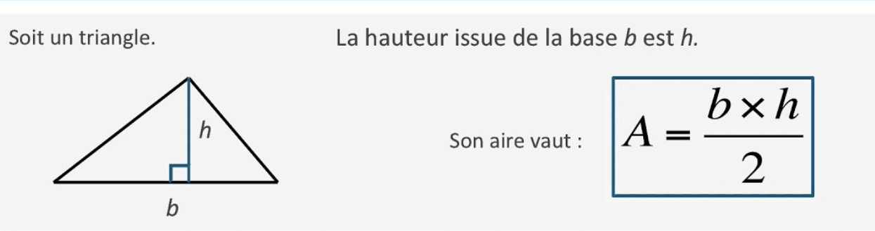 ou simplement la formule d'aire d'un triangle si tu connais une base et sa hauteur :