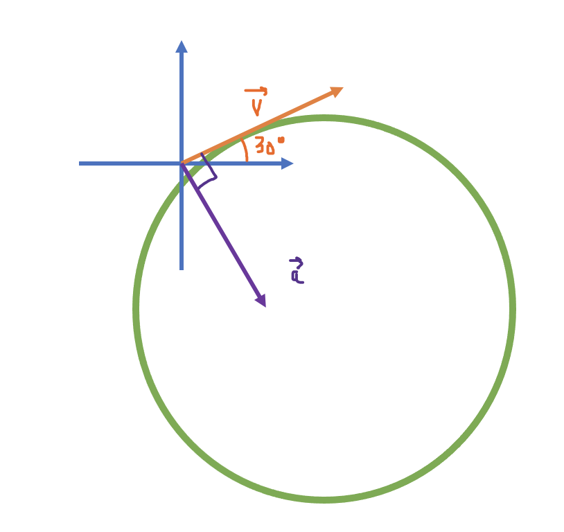 Par les propriétés des angles complémentaires, on peut donc conclure que l'accélération se trouve à 30° à l'est du sud.