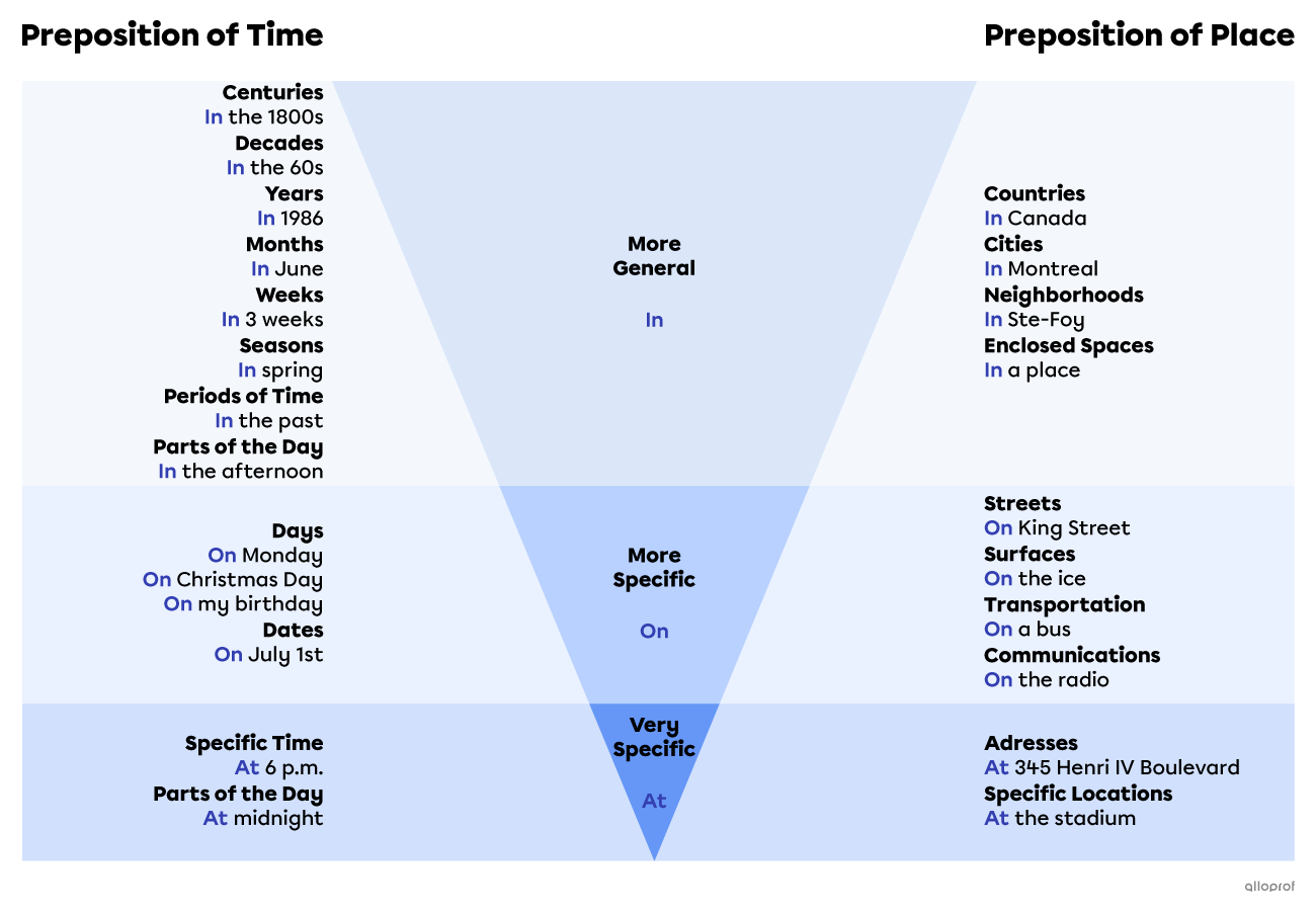 Pour le deuxième exercice, ça me semble tout bon! Bon travail :D Voici tout de même un graphique pour te rappeler les fonctions des prépositions: