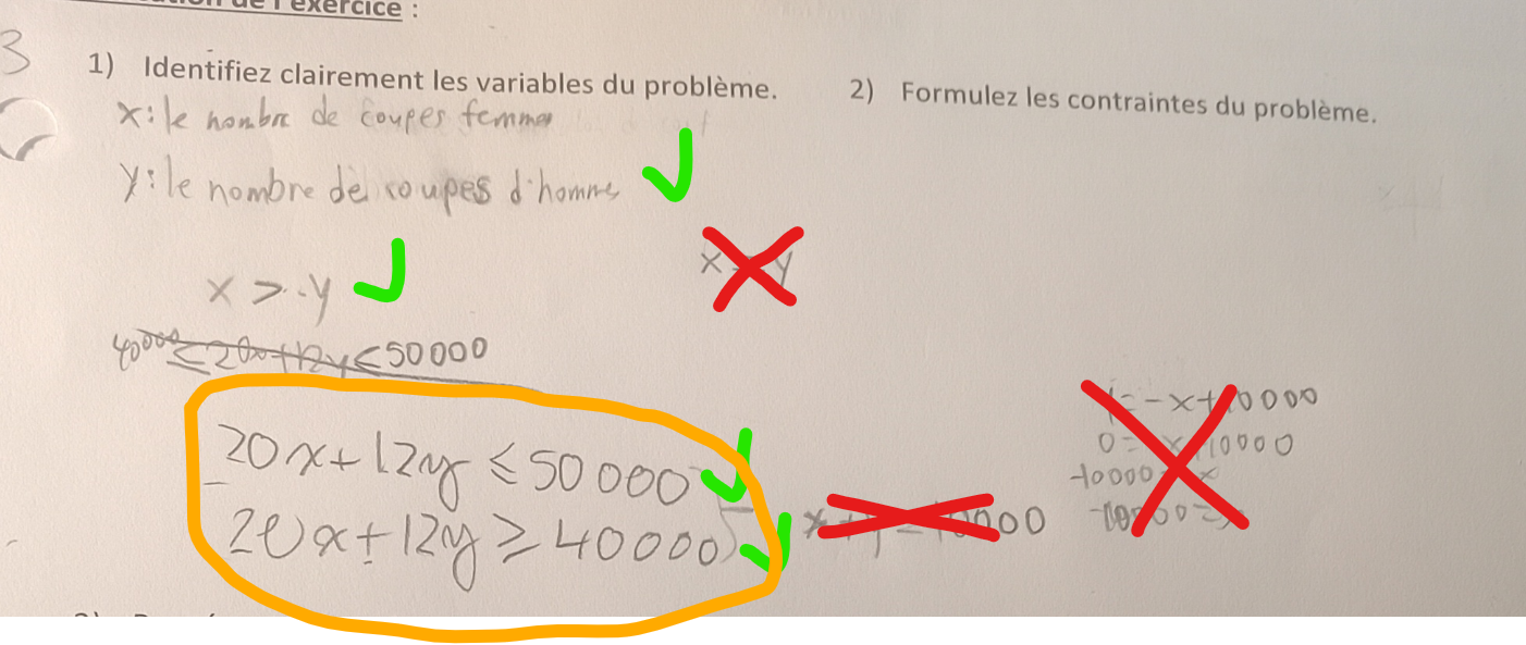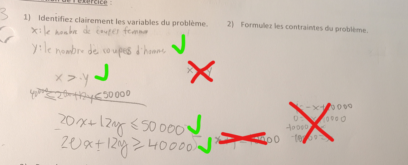 Ensuite, pour les contraintes du problème, voici mes corrections :