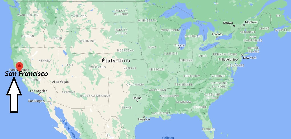 San Francisco se situe sur la côte ouest des États-Unis, dans l'État de Californie, au bord de l'océan Pacifique.