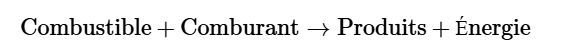 L’équation chimique d’une combustion a généralement la forme suivante :