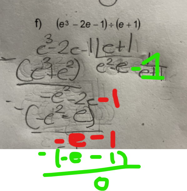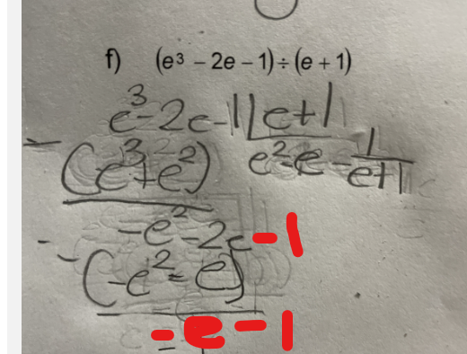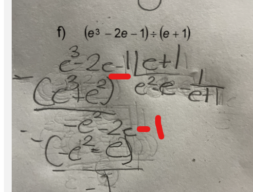 Cependant, (e³-2e-1) - (e³+e²) = -e²-2e-1, et non -e²-2e.