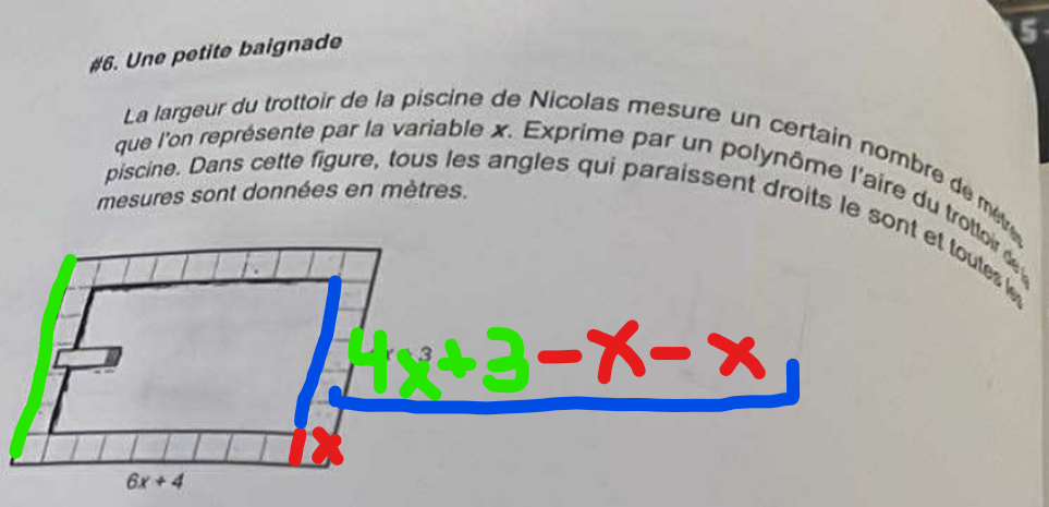 Donc, tu peux trouver la mesure de la largeur de la piscine :