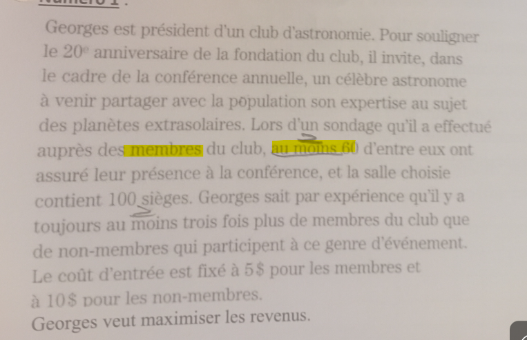 Donc, l'inéquation est x≥60, et non x+y≥60.