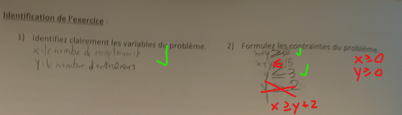 N'oublie pas aussi d'ajouter les contraintes excluant les nombres négatifs (x≥0 et y≥0).