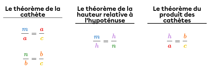 bonsoir j'aurai besoin d'explications sur les relations métriques dans un triangle rectangle , c'est nouveau pour moi ,je n'y comprends rien avec les formules elles m'embrouillent