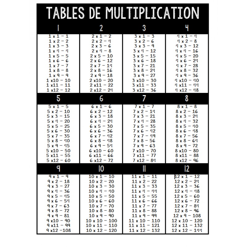 Tu pourrait aussi trouver quelques astuces qui t’aideront à savoir tes tables de multiplication, comme la règle des doigts avec la table de 9 ou l’ajout du 0 avec la table de 10.