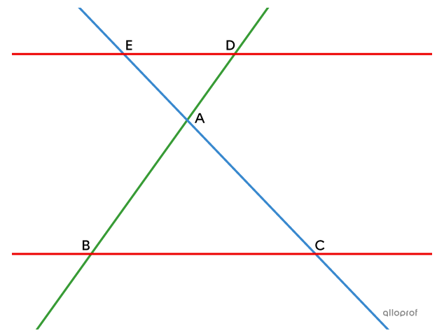 Le théorème de Thalès s'applique peu importe si les sécantes (EC et BD) se croisent à l’extérieur ou à l’intérieur des droites parallèles (ED et BC).