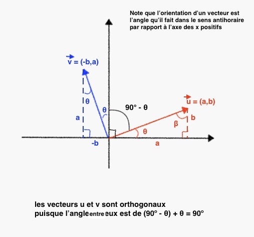 • L’orientation des vecteurs permet de déterminer qu’ils sont orthogonaux, en ayant une différence de 90° entre eux.