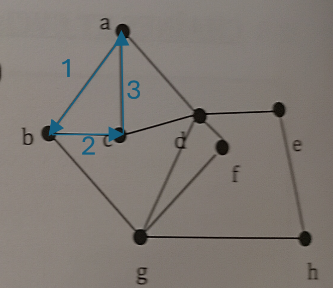 La longueur d'une chaîne est égale au nombre d'arêtes. Dans le cas de la chaîne ABCA suivante, la longueur est de 3.