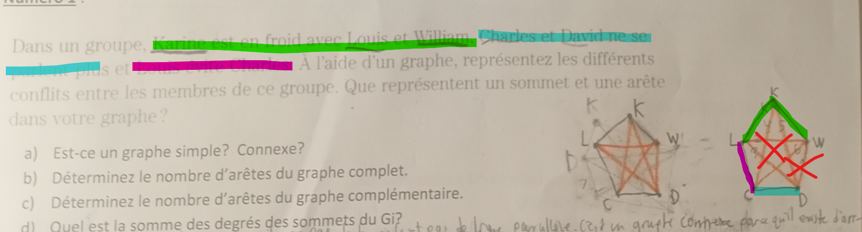 Tout d'abord, ton graphe n'est pas tout à fait juste. Je t'ai surligné ici les différents liens à faire selon le bon énoncé.