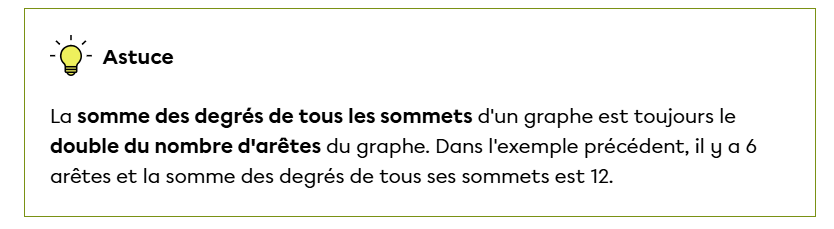 Pour la question 3, la réponse est bien la somme des degrés des sommets, bravo!