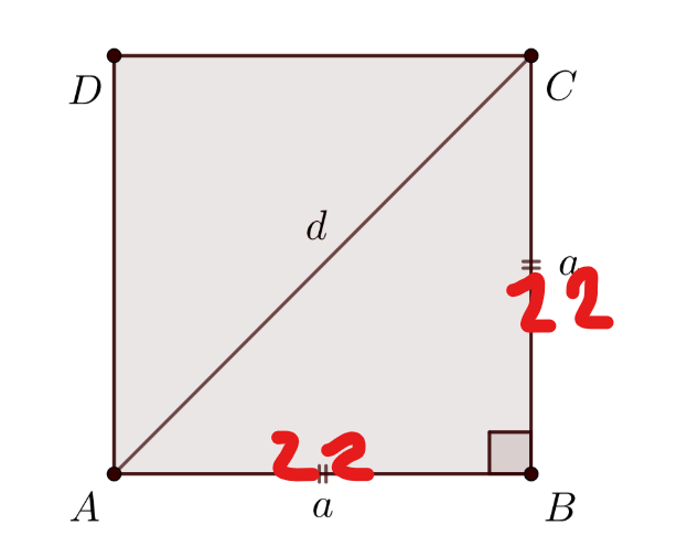 Dans le triangle rectangle ABC, AB et BC sont les cathètes, et AC est l'hypoténuse (et la diagonale du carré). On a donc cette équation :
