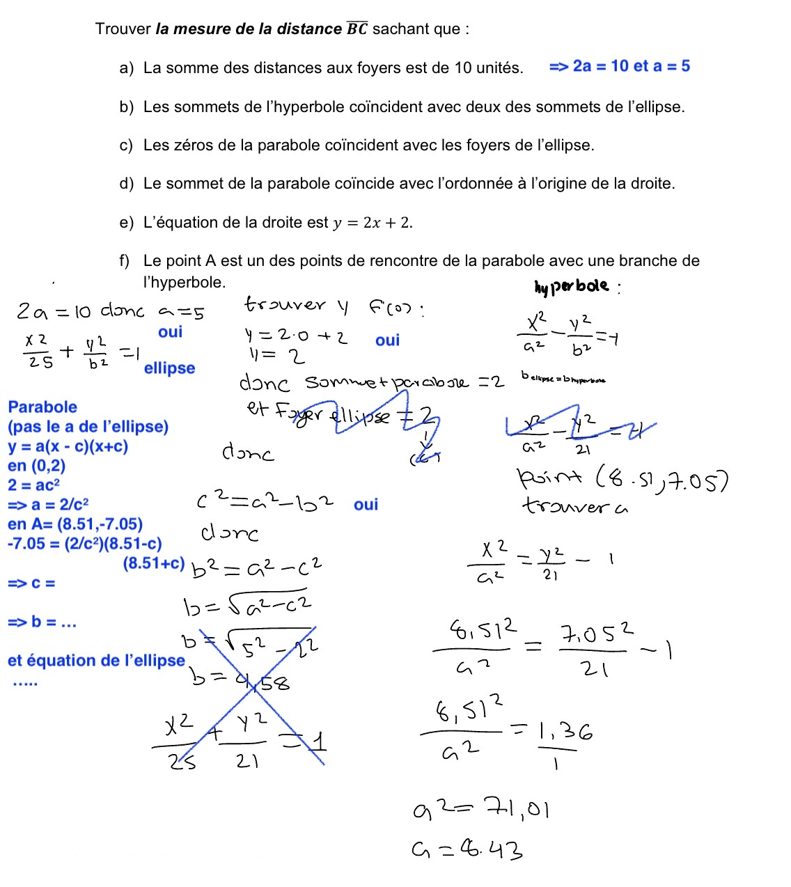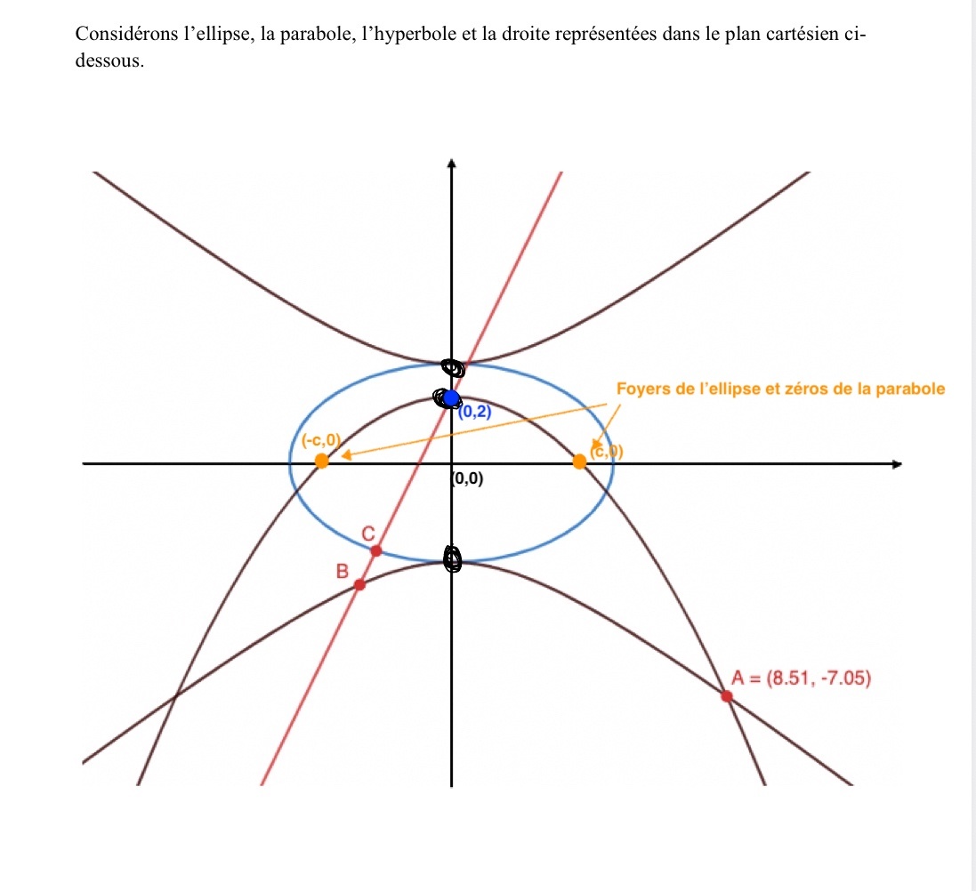 Une fois l'équation de l'hyperbole trouvée, tu vas trouver les points B et C qui sont respectivement