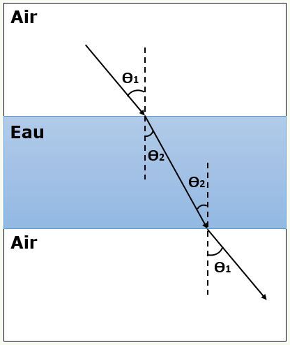 Pourquoi le pinceau n'est pas dévié à la sortie de sa substance dans la deuxième loi de la réfraction? (Autrement dit, comment se fait-il que le pinceau lumineux n'est pas dévié à sa sortie dans l'air?)