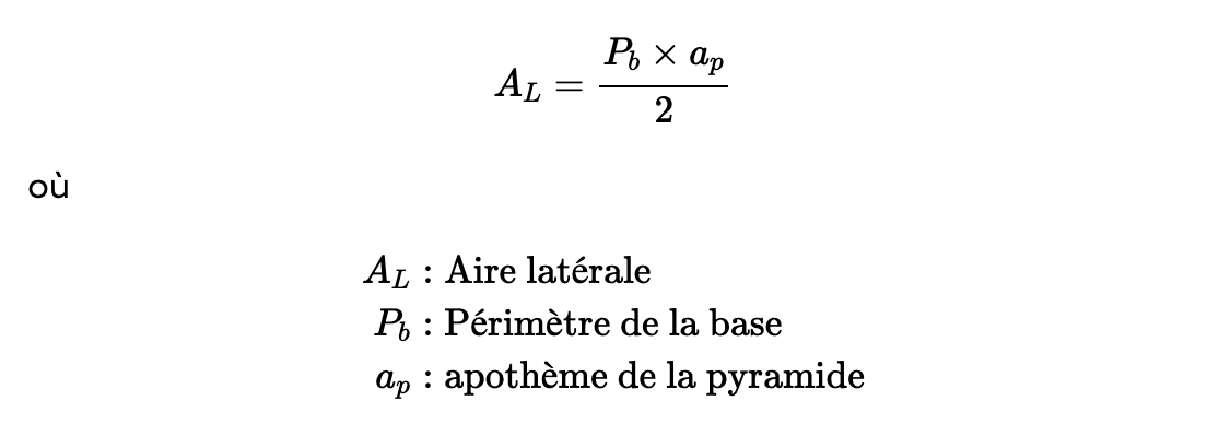 La formule de l'aire latérale d'une pyramide est :