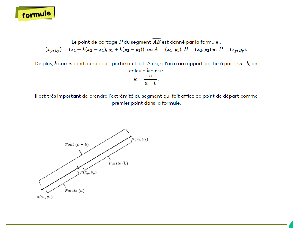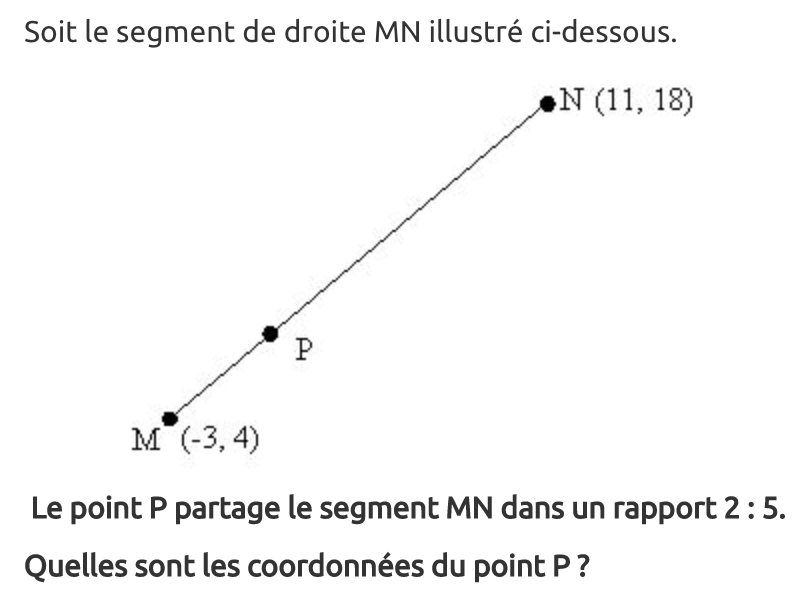 Il s'agit d'un problème de point de partage, voici la formule qu'il faut utiliser pour trouver le point P :