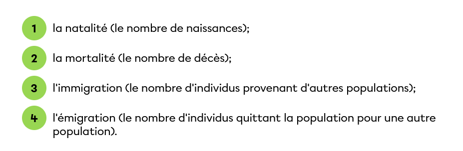 Voici quelques facteurs qui influencent la croissance d'une population.