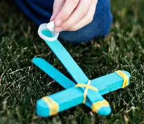 Cette vidéo de UnisTV te montre très bien, étape par étape, comment faire une catapulte avec des objets de la maison!
