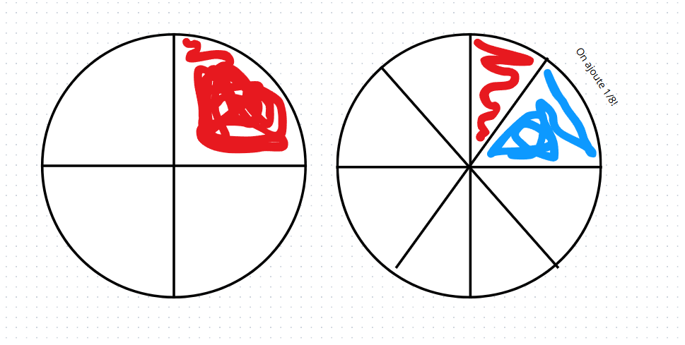 Par exemple, essaie d’imaginer ceci : est-ce facile d’additionner 1/4 de pointe avec 1/8 de pointe? 🤔