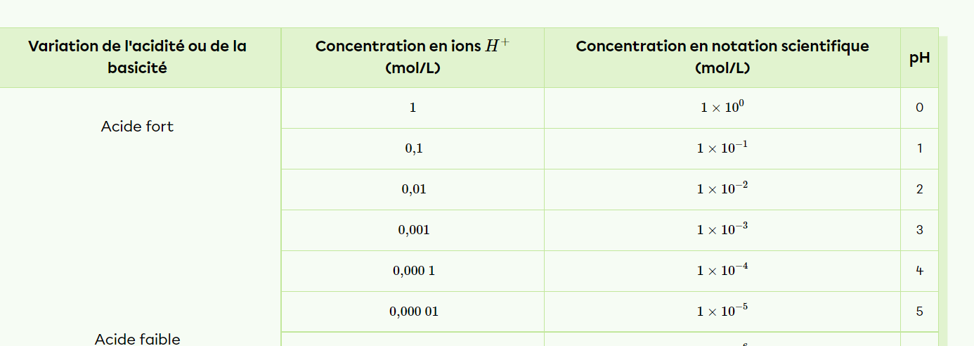 Avant de faire le problème ensemble, il faut se rappeler que le pH ne correspond pas uniquement à un chiffre de 1 à 14 ; il peut également être décrit en concentration d'ions h+