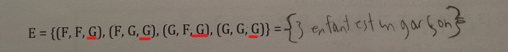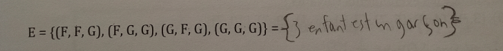 L'extension que l'on te donne ne représente pas l'événement d'avoir 3 garçons, puisqu'on peut constater que plusieurs résultats dans cette extension comprennent des filles.